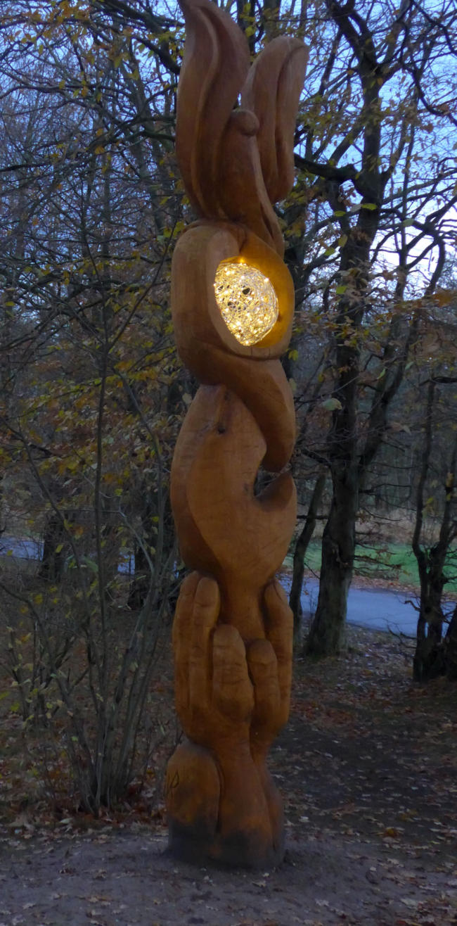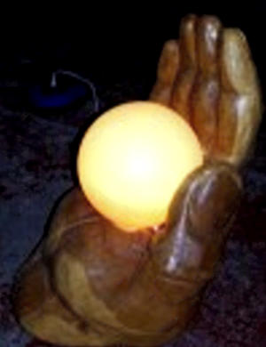 Eichenhand mit Lampe